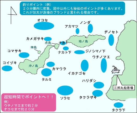 釣りポイントまで2〜20分で到着できる西日本屈指のブランド漁場です。釣りポイントが狭いエリアに密集しているので無駄な移動時間がなく実釣時間をどこよりも多く確保できます。これこそが加太最大の強みです!!