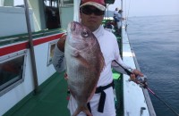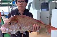 大阪の田中さんハマチ70cm1匹タイ55cmを1匹でした