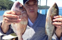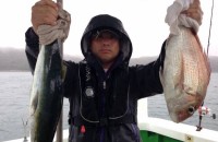 大阪の山口さんハマチ1匹タイ2匹アコウ3匹