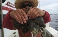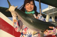 風と二枚潮に手こずりましたが、皆さん頑張って頂き、大阪の中島さんが10匹、同じく大阪の井上さんが、9匹等の結果になりました。型は小型から110cmまで色々混じりますが、良い潮回りにあたれば数、型共に期待出来そうです