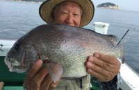 大阪の水口さんブリ1匹アコウ1匹ゲット