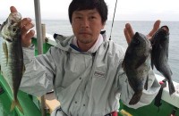 ご乗船ありがとうございました 前半戦強風と波でダメダメ 後半戦歯ものでダメダメでした 船中鯛3枚