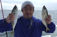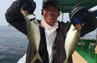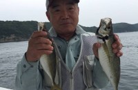 泉南市の池畑さん夫婦でアジ20~35cm19匹メバル25~26cm5匹タイ46cm1匹