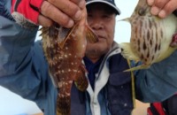 和歌山市の平良石さんカワハギ17~22cmを11匹ガシラ15~22cmを119匹