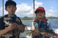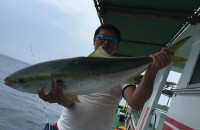 本日もたくさんのご乗船ありがとうございました。暑い中、大物ゲットを夢見て頑張って頂きましたがエサの反応がイマイチでした。釣果はブリ2匹、メジロ1匹