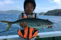本日もたくさんのご乗船ありがとうございました。今日は折角来て頂いたのにゴメンなさい。ウネリのせいかイワシの反応がほとんど無くエサ探しに明け暮れてしまいました。釣果はブリ85㎝、アコウ40cm、ツバス40cm数匹、チャリコ30、25㎝、アジ、ガシラ、カマス少々でした。シケ後に期待と言う事で本日はご容赦下さい。又のご乗船お待ちしております。