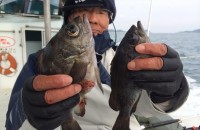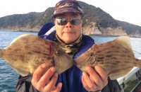 きつい風でしたがどてら流しでいい奴を釣っていただきました 57cm52cmを筆頭に船中13枚 力の抜けたチャンプ流石です