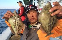 大阪の大坪さんカワハギ同型を20匹でした今日は風が強く釣りすらく苦戦しましたが型はまあまあ良かったですね。