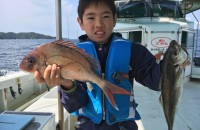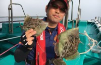 大阪の梶田さんタイ38㎝頭に5匹ゲット他ホウボウ ガシラでした。船中タイ5匹