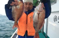 泉佐野の室谷さん桜鯛50cm、42cm2匹