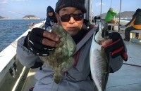 時折小雨がぱらつき寒い中のご乗船ありがとうございました。今日も大判カワハギ、チャリコをメインに頑張って頂きました。竿頭は和歌山の川瀬さんでカワハギ大7、小1匹、チャリコ3匹でした。他の方もカワハギ、チャリコ、ホウボウなどでお土産確保されてました。又のご乗船お待ちしております。