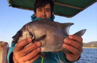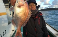 本日の釣果は、あまり釣れませんでした。船中タイ2匹ハマチ1匹でした。堺市の上地さんタイ1匹ハマチ1匹奈良の清水さんタイ1匹でした。風波の強い中頑張って頂きありがとうございました。又のご乗船お待ちしております。本日はありがとうございました。