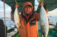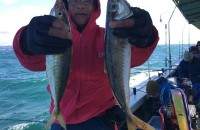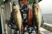 朝からアタリポツポツ有りました船中タイ16匹他ハマチ24匹メジロ2匹