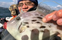 東大阪の本谷さんカワハギ大小とりまでて33匹