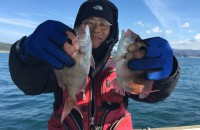 本日は、午後の出船でしたが、生憎の雨模様で肌寒い北風の中頑張って頂きましたが、釣果もちょっと寒い事に・・・