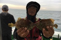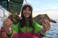 冷風の中、ご乗船ありがとうございました。前半ベラの猛攻で思うようにカワハギの顔が見れず、しかもちびっ子ばかりでどうなる事かと思いました。潮が緩んでから大きいカワハギがチラホラ見れたのが唯一の救いです。数的にはトップ8匹と振るいませんでした。