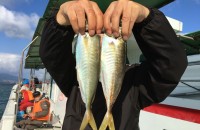 今日は、風が強く釣り辛い海況でした。アジも喰い渋く、森ノ宮の山本さんが1番多く37cmまでを4匹、船中では25匹程度と言う結果になりましたが、虫エサに良型の真鯛が良く反応し、10匹以上釣れました。他にチャリコ多数、良型マゴチ、キスなど…。