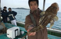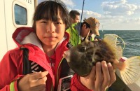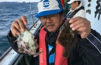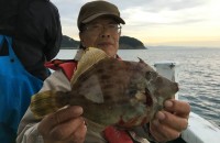 午後になっても風は止まず、ポイントも限られましたが、みなさん頑張って肝パンカワハギを釣って頂きました。あいにく数が伸びず、大阪の井川様が6匹でトップ、中道様が貸竿で5匹、4匹の方は多数という結果になりました。27cmの良型も混じり、海況良ければ期待出来そうです。