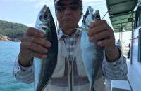 今日のアジは朝イチだけのモーニングサービスでした。アジ良い人5匹、船中16匹。後半はガシラ釣りで良い人良型20匹でした。