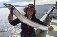 大阪の佐賀さんタチウオ70~100までを2人で15~16匹でした