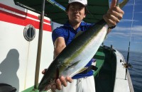 本日の釣果は、シオ2匹にハマチのバラシでした。大阪の藤原さんシオ38㎝高石市の幸崎さんシオ38㎝でした本日は、釣果少なくて申し訳ありませんでした。ありがとうございました。