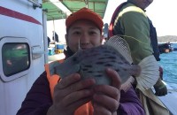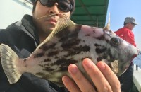 秋晴れに恵まれた本日のカワハギ専門便は、尺越えはなかったものの、鹿児島の園田さんが27cmまでを35匹で竿頭、続いて愛知の黒鬼さんが23匹、鈴木さんが22匹、大阪の戸川さんが20匹と言う結果でした