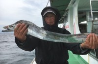 心配していた雨にも降られず、まずまずの海況の中でスタートした、本日のタチウオ午前便は、右肩上がりで活気づき終わってみれば、皆さん良型タチウオをゲットされておりました
