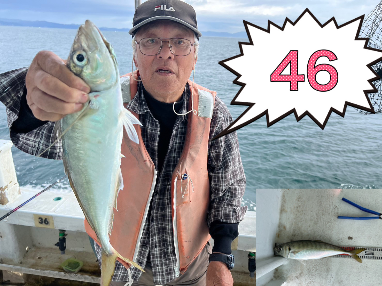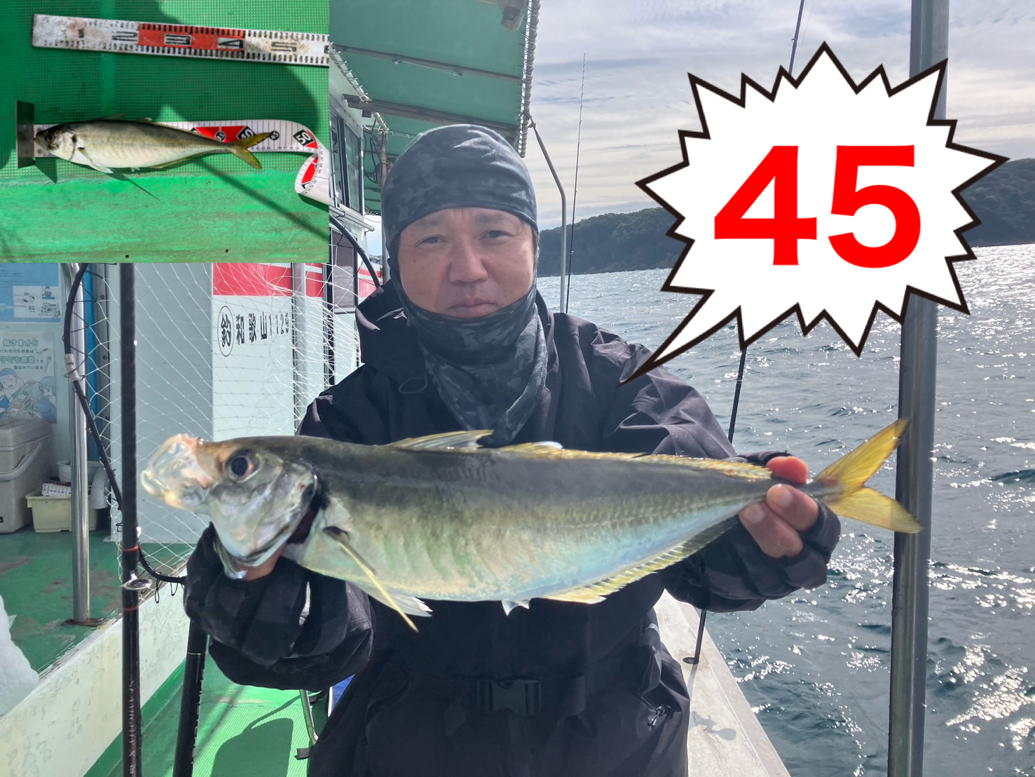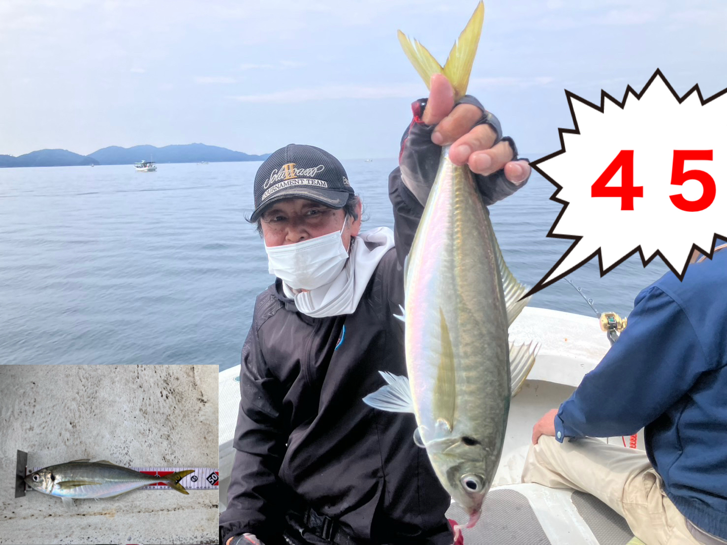 鬼アジを釣った方は船長またはスタッフに検寸をお申し出下さい。45cm以上であれば『船長公認ステッカー』をお渡しいたします。帰港後、ステッカーを持って受付にお越し下さい。所定のフォームを記入して下さい。記念品を贈呈いたします。