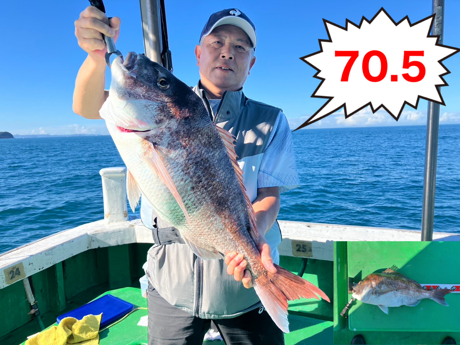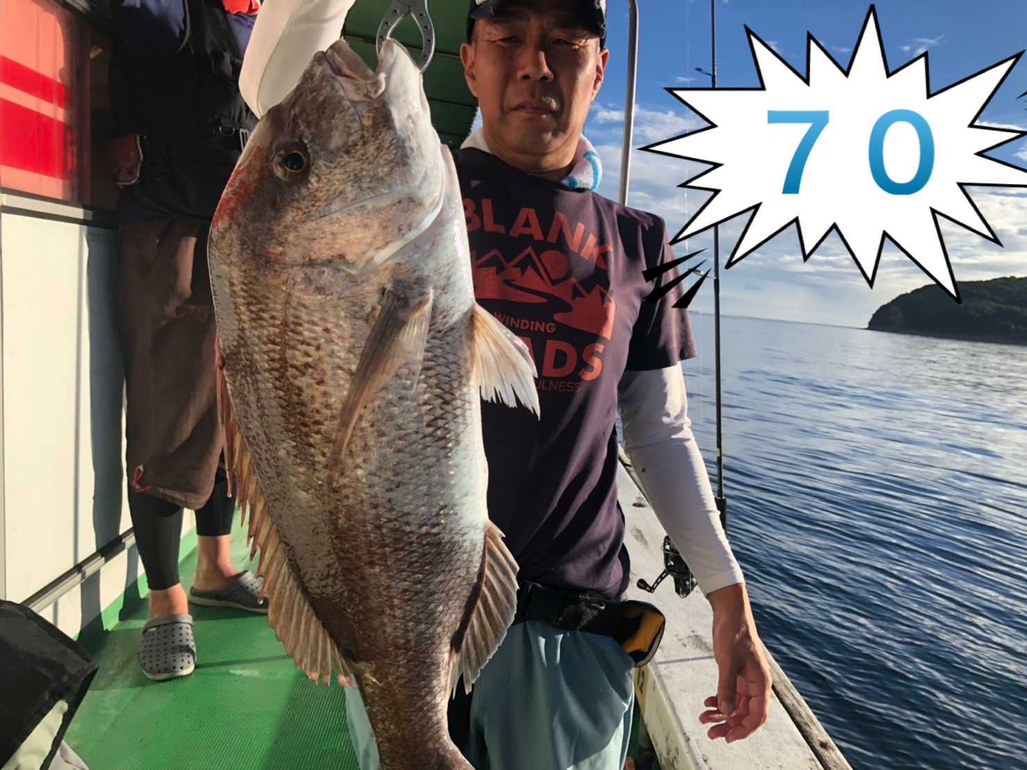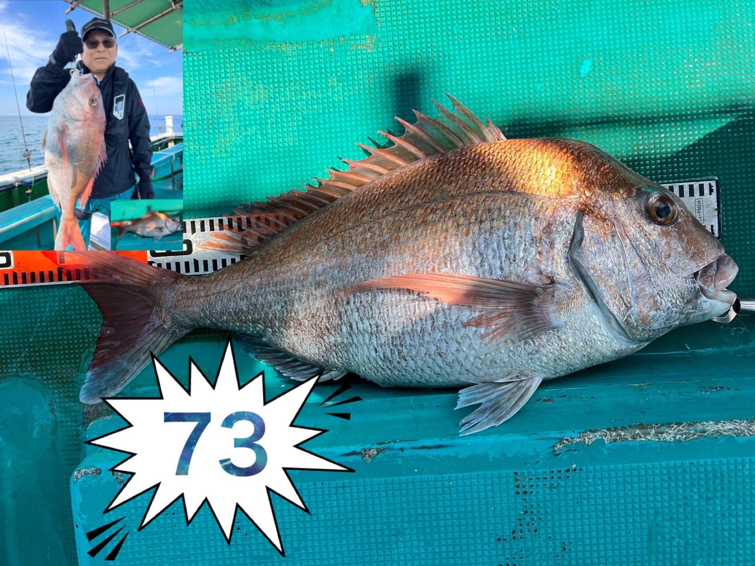 大鯛を釣った方は船長またはスタッフに検寸をお申し出下さい。70cm以上であれば『船長公認ステッカー』をお渡しいたします。帰港後、ステッカーを持って受付にお越し下さい。所定のフォームに使用タックルを記入して下さい。記念タンブラーを贈呈いたします。